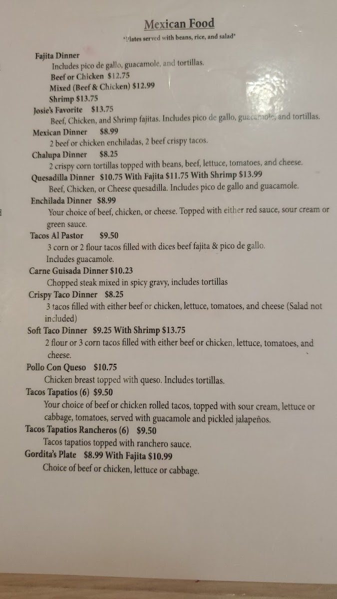For a full meal, Rangel's also features signature dishes such as Josie's Favorite, the Mexican Dinner, and the Chalupa Dinner. If you're in the mood for more variety, both the Quesadilla Dinner and Enchilada Dinner provide a generous and satisfying Mexican dining experience. With a range of options available for every taste, Rangel's menu truly caters to all cravings, ensuring a fulfilling and flavorful dining experience.